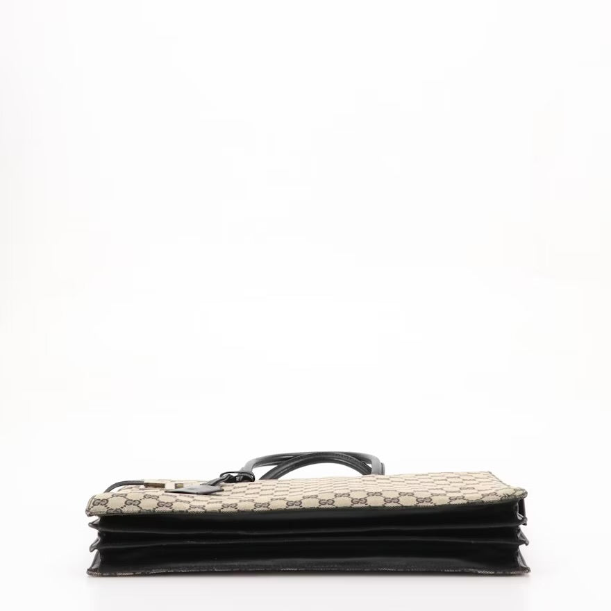 Gucci Top Handle Business Bag Tote in Dark GG Canvas and Leather Trim